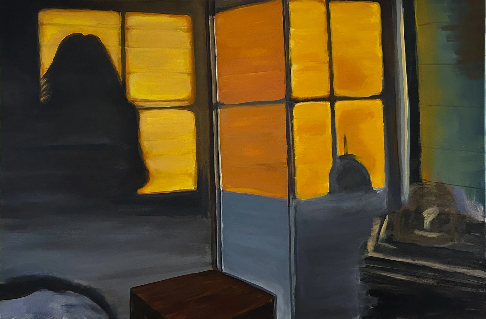 Next, I’m working on another self-portrait of sorts. It is my shadow as I stood, stunned before the beauty of morning sun hitting the wall of the Airbnb my hubby and I were visiting.